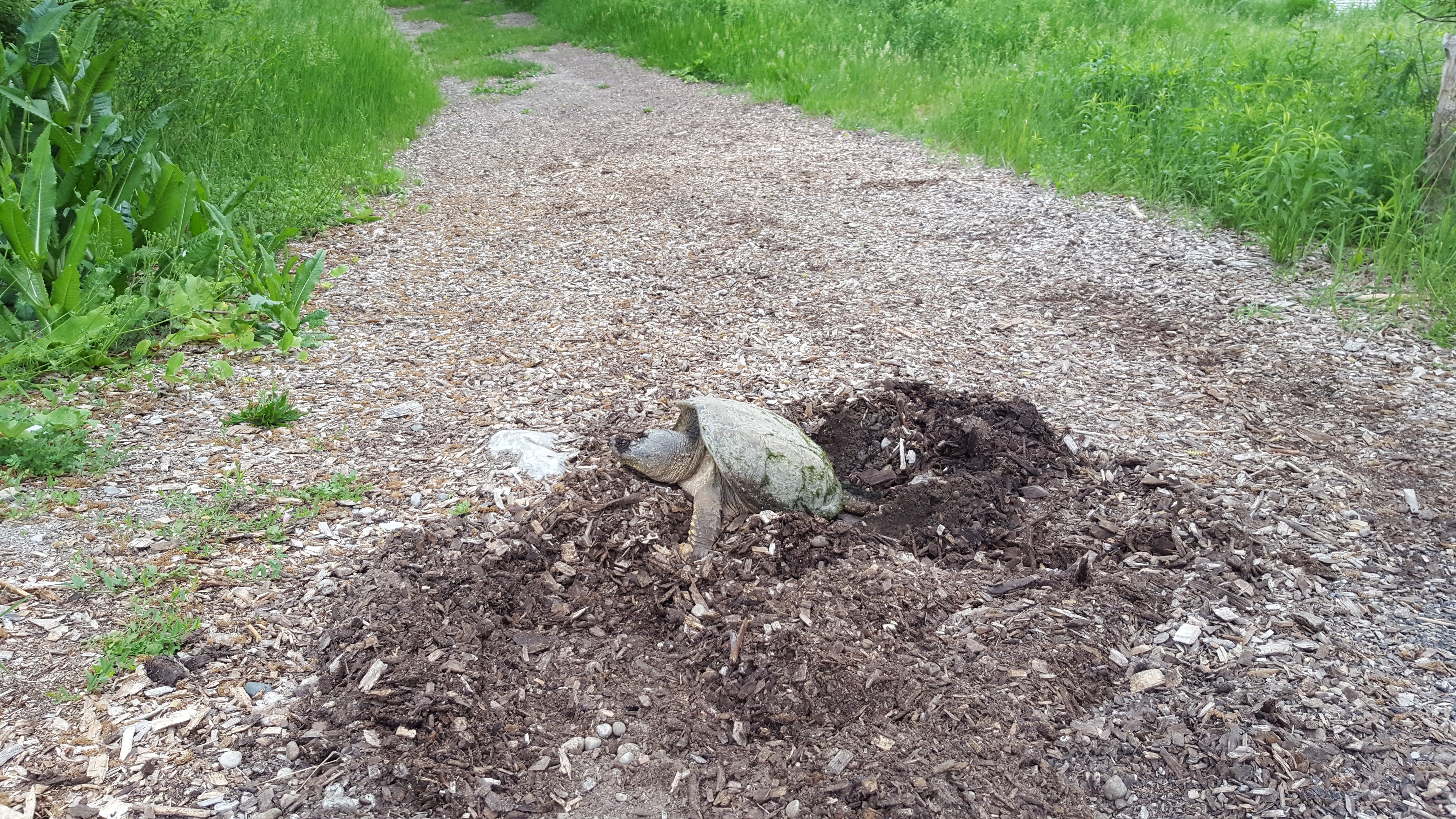 돌아오는 산책로에서 꽤 큰 거북이가 산란을 준비하고 있었다. -_- 산책로 한가운데 땅을 파고 있었는데, 별 방해 받지 않고 산란을 무사히 마쳤기를 바래본다. 건드리지도 않았지만 돌아와서 찾아보니 성질이 사납고 악력이 좋아 왠만한 것들은 두동강을 낸다고 하니 더욱 조심해야 겠다.
