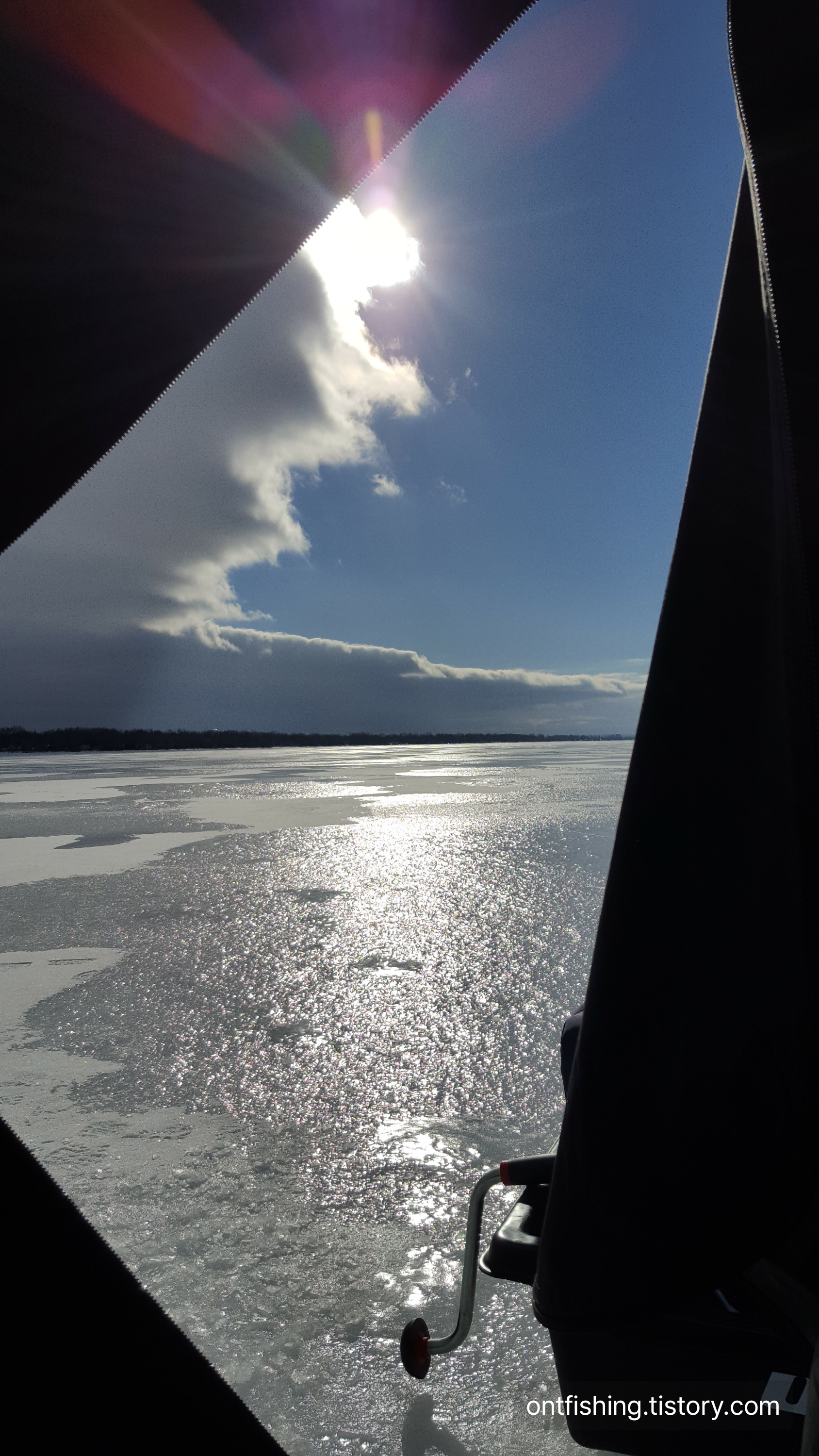 순간 등에 소름이 쫙... 경이롭다 못해 살짝 무섭기까지 하다. 조금이라도 밝게 빛이 번쩍, 하면 수면 전체에서 촤아악! 하고 뭔가가 점프를 한다. 아마 물고기들도 갑자기 위로 뭔가가 지나가니, 놀라서 반응응 하는 듯. 이 뒤로 한 한시간 동안은 낚시는 그만두고, 목이 아플 정도로 오로라 구경을 했다. ㅎㅎ